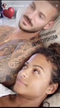 Elle a 37 ans. Il en a 33 ans. Mais depuis un an, ils filent le parfait amour. Malheureusement, Matt Pokora et Christina Milian ne pouvaient pas être ensemble pour l'occasion mais la jeune femme n'a pas hésité à lui crier son amour très publiquement avec un cliché pris sous la couette du couple. Publié dans la story Instagram, il permet surtout de mesurer le chemin parcouru par les deux amoureux.