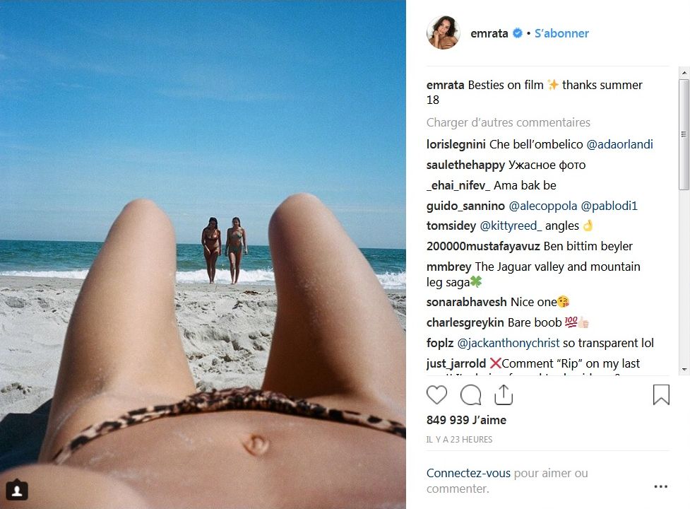 Le 31 août, Emily Ratajkowski a partagé une photo d’elle topless sur la plage. Sur le cliché, nous voyons ses jambes, un bout de son sein mais aussi son nombril.