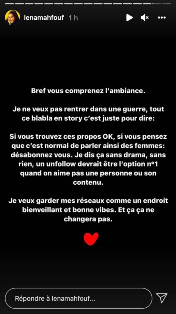 Face à la violence de ces critiques, l'influenceuse s'est confiée à sa communauté. Selon elle, un changement d'ambiance, un tournant a lieu "depuis le mois d'août". Bienveillante et pétillante, Lena Situations a demandé à ses fans de conserver leur bonne humeur. "Pour les autres", Lena Situations a demandé à ses détracteurs de ne plus la suivre.