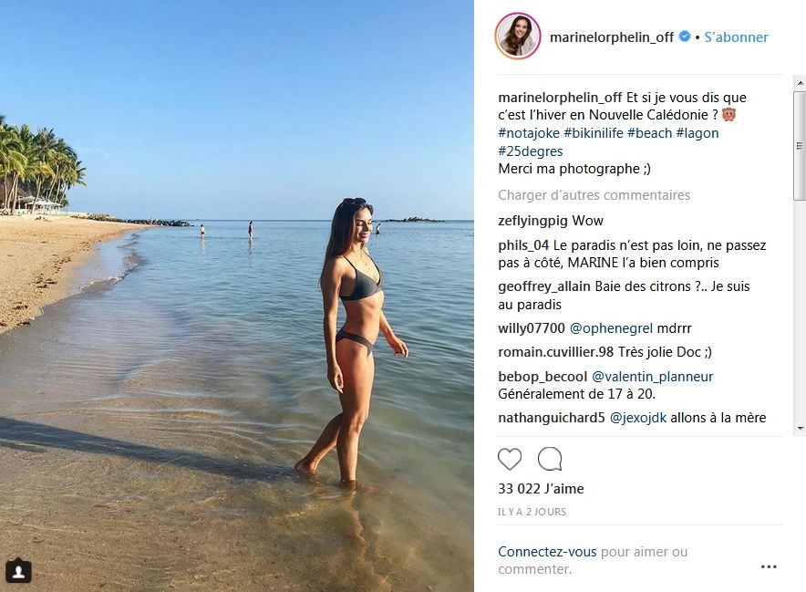 La jeune femme a partagé une première photo d’elle en bikini sur la plage. Les internautes ont ainsi pu se délecter du physique irréprochable de Marine Lorphelin. Cette dernière a inscrit en légende :