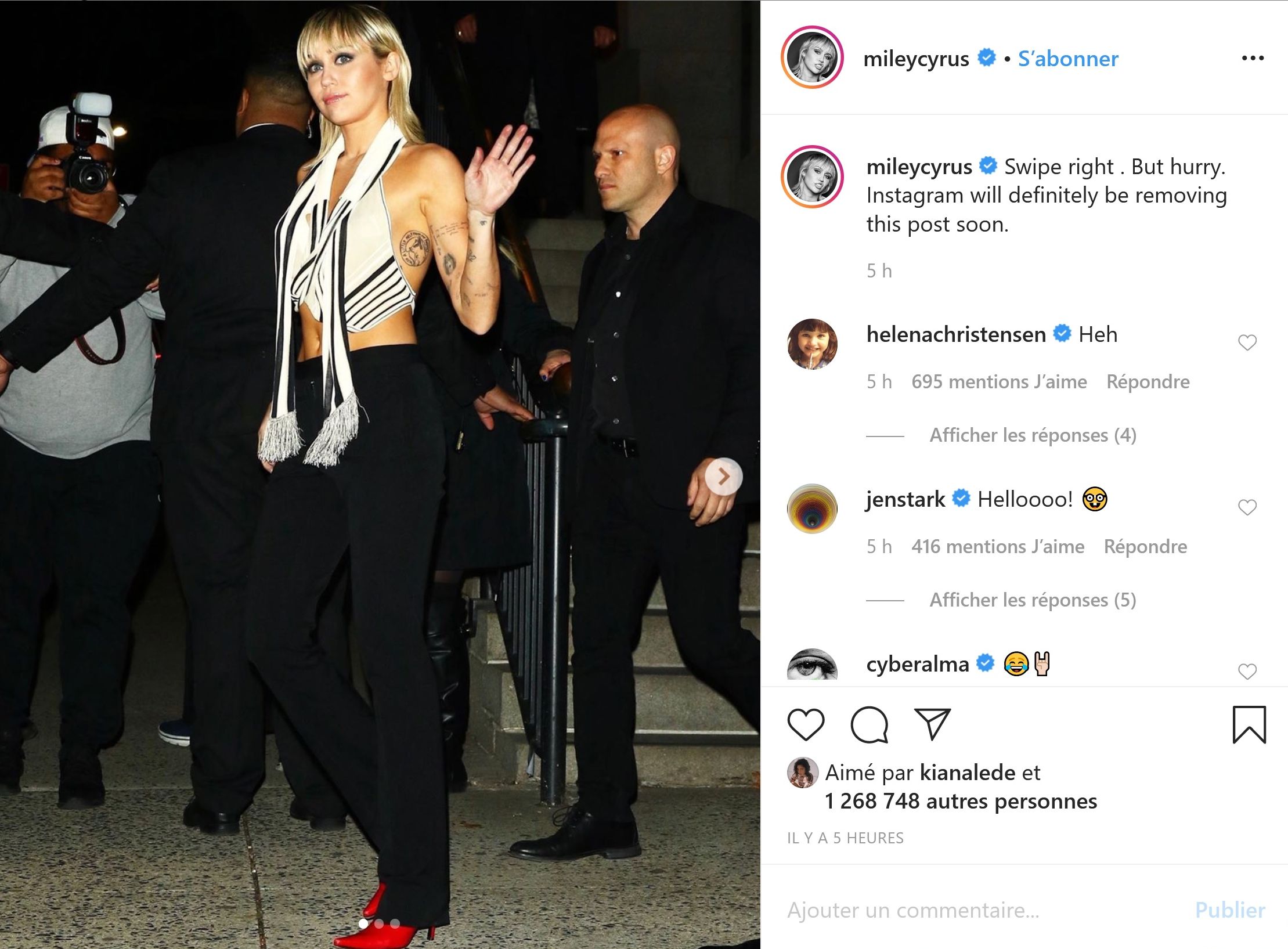Swipez à droit. Mais dépêchez-vous. Instagram va effacer ce post rapidement.