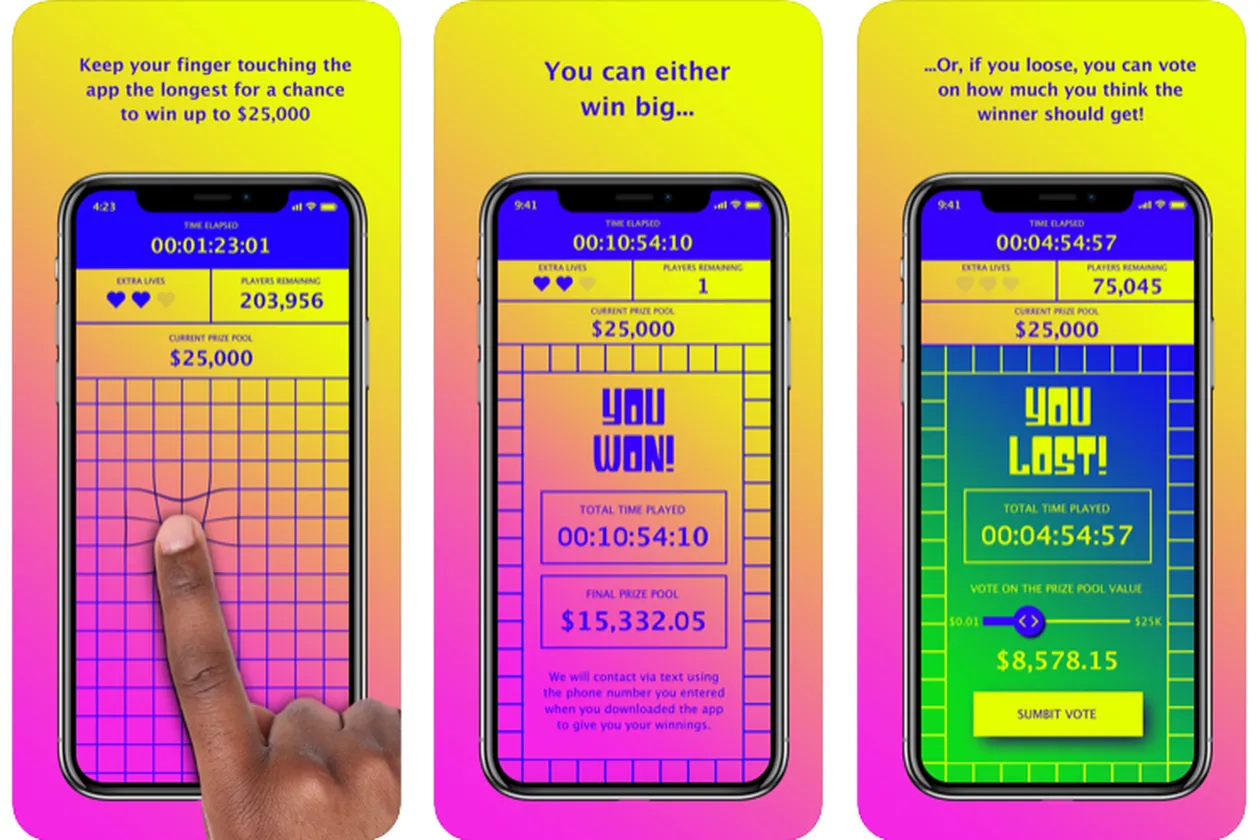Une appli promet la coquette somme de 25 000 dollars à celui qui laissera son doigt le plus longtemps sur son téléphone.
