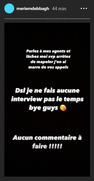 Dont acte ! C'est par le bais de son agent, Elodie Lerale, que nous avons pu en apprendre un peu plus ! Selon les dires de sa fidèle collaboratrice, aucune information ne sera livrée aux médias quant au présumé départ de Meriem Debbagh.