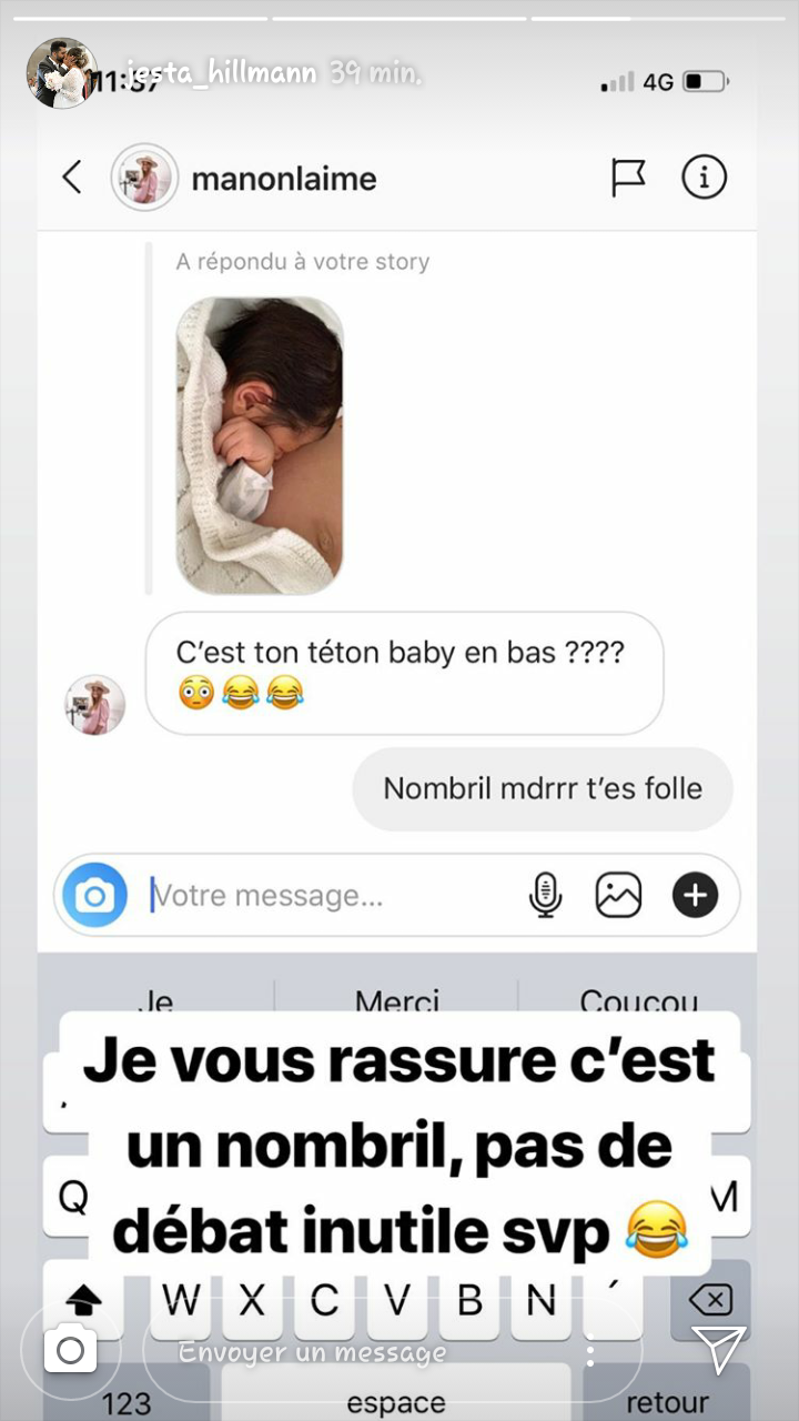 Certains fans de l'ancienne aventurière, manifestement choqués, ont pensé qu'il s'agissait du sein de la jeune mère. Dans une autre story postée quelques minutes après, Jesta a rétabli la vérité et a rassuré les internautes. Il s'agit de son nombril, et rien d'autre.
