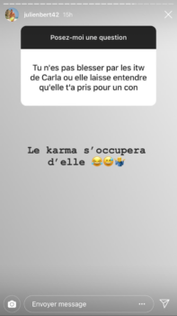 Julien Bert s'en prend à Carla Moreau sur Instagram