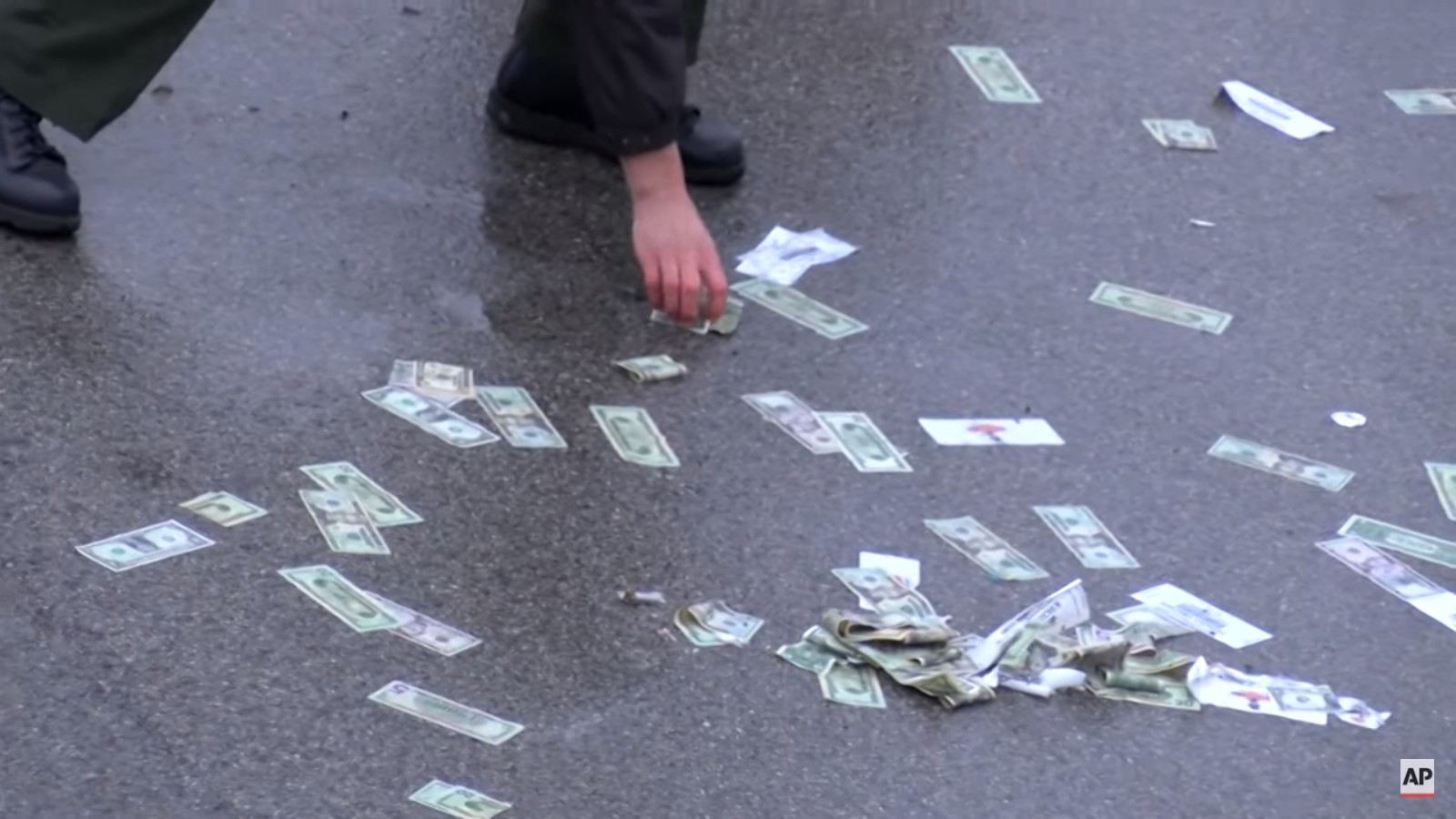 Certains pourraient croire qu'il s'agit de faux billets de banque laissés sur la route par un petit plaisantin. Mais non, il s'agit bien de vrais billets qui, à la suite d'un terrible accident, étaient à la disposition de tous.